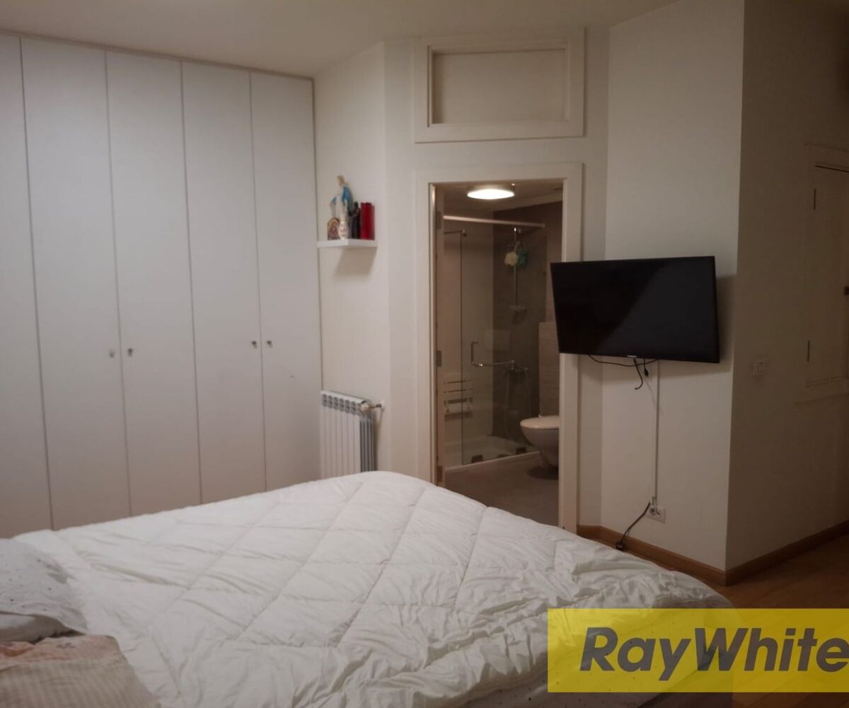 The apartment includes three bedrooms, three bathrooms, a maid’s room, and a storage room, making it ideal for comfortable city living. It comes fully furnished and includes kitchen appliances and central A/C for year-round comfort.